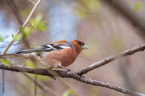Fototapeta premium Common chaffinch, Fringilla coelebs, sits on a tree. Common chaffinch in...
