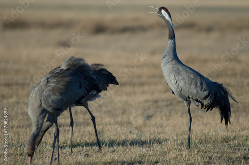 © Víctor, Obraz premium Common crane Grus grus calling. Gallocanta Lagoon Natural Reserve. Aragon. Spain.