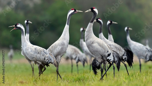 © roobcio, Obraz premium Common crane (Grus grus) in the wild. Early morning on swamp erens.