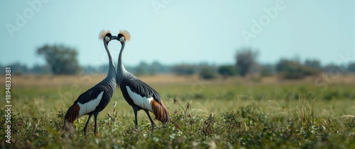 © The 2R Artificiality, Fototapeta premium Common cranes observed in the field