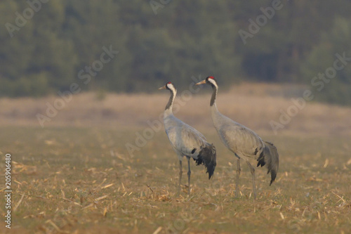 © Iliuta, Obraz premium Common Cranes, on the field, in spring migration