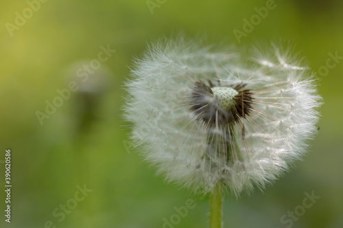 Fototapeta premium Common dandelion Taraxacum officinale faded flowers looks like snow ball, ripe cypselae fruits