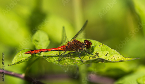 Fototapeta premium Common Darter Dragonfly Sitting on a Leaf