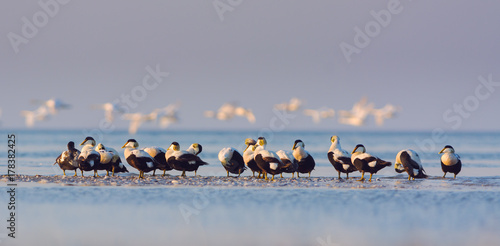 Fototapeta premium Common eiders on Black Sea Coast, Ukraine