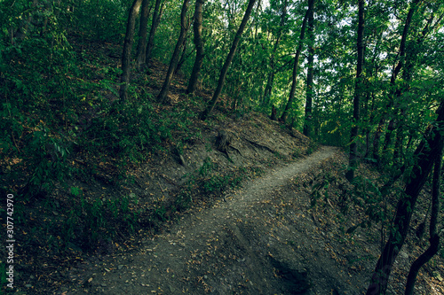 Fototapeta premium common forest scenic natural environment with in twilight with trees and small trail