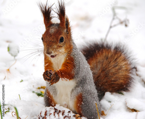 Fototapeta premium Common forest squirrel in the forest park