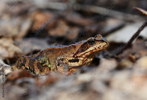 Naklejka premium Common frog (Rana temporaria) closeup in spring.