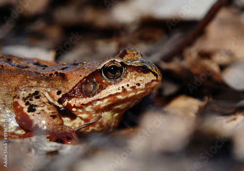 Naklejka premium Common frog (Rana temporaria) closeup in spring.