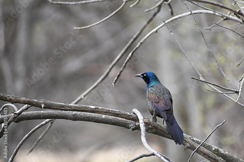 © Switch Lab, Obraz premium Common Grackle perched on a branch with blurred background