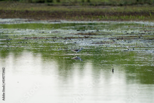 © erenalkis, Fototapeta premium Common Greenshank Wading in Shallow Wetland Water