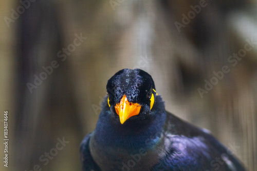 Fototapeta premium Common Hill Myna known for its exceptional ability to mimic human speech, a...