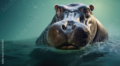 © Ruslan Gilmanshin, Fototapeta premium Common hippopotamus or hippo (Hippopotamus amphibius) showing aggression