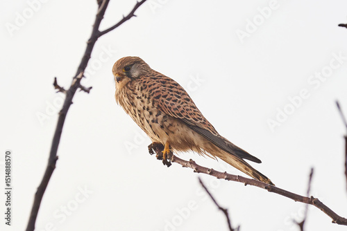 Fototapeta premium Common kestrel sitting on a branch (Falco tinnunculus). Bird of Prey