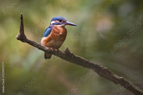 Fototapeta premium Common kingfisher (Alcedo atthis) on branch, Emsland, Lower Saxony, Germany,...