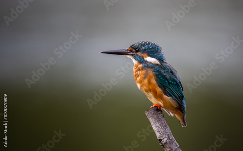 © photonewman, Fototapeta premium Common kingfisher on the branch tree animal portrait.