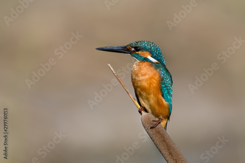 Fototapeta premium Common Kingfisher Portrait on Cattail