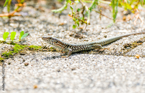 Fototapeta premium Common lizard on stony ground. Animal in close-up.