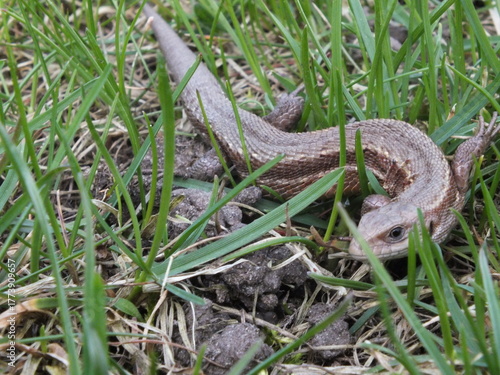 © TPS, Obraz premium Common Lizard (Zootoca vivipara) crawling through green grass on a garden lawn