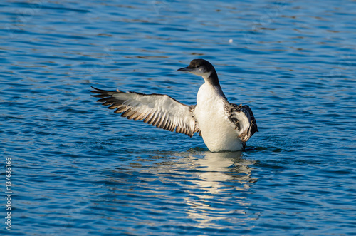 © Fritz, Fototapeta premium Common Loon flapping wings in Ocean pond