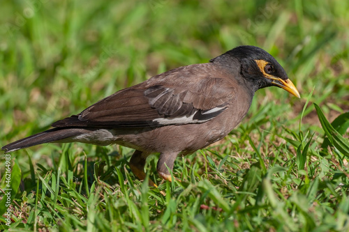 © Ali Tellioglu, Fototapeta premium Common Myna (Acridotheres tristis) perched on grass