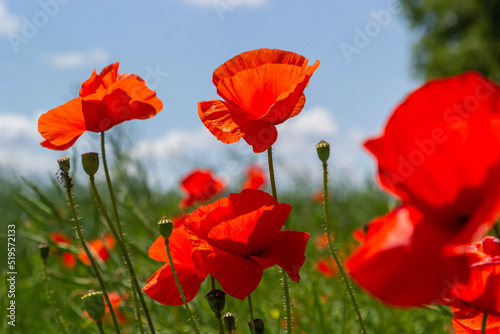 Fototapeta premium Common names for Papaver rhoeas include corn poppy, corn rose, field,...