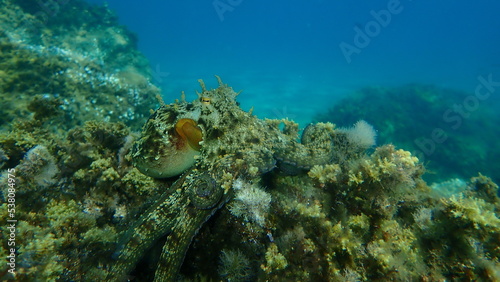 Fototapeta premium Common octopus (Octopus vulgaris) hunting, Aegean Sea, Greece, Halkidiki