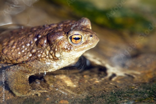 Naklejka premium Common or European toad brown colored in latin bufo bufo
