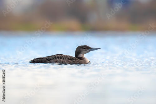 © Sander Meertins, Fototapeta premium Common or great northern loon Gavia immer hunting and eating crayfish
