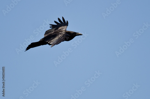 Fototapeta premium Common Raven Flying in a Blue Sky