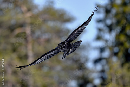 Obraz premium Common raven in flight