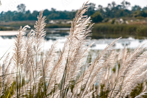 © asiraj, Fototapeta premium Common reed shining during sunset