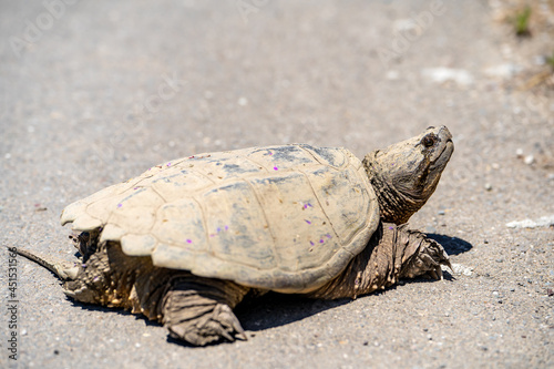 Fototapeta premium Common Snapping Turtle crawling on land.