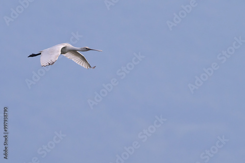 © Juanma, Obraz premium Common Spoonbill Bird in fly, Platalea leucorodia