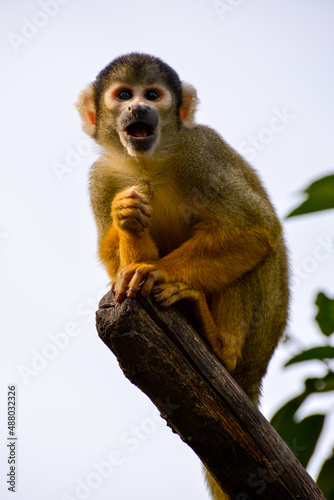 Obraz premium Common Squirrel Monkey (Saimiri sciureus) clinging to a dead tree