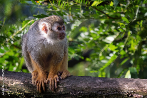 © Lubos Chlubny, Obraz premium Common squirrel monkey (Saimiri sciureus) on tree in the nature.