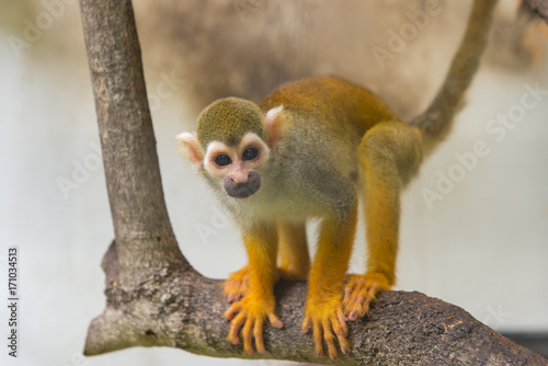 Obraz premium Common squirrel monkey, Saimiri sciureus on tree in zoo
