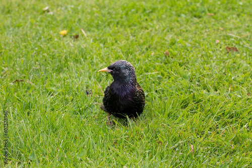 © Nick, Obraz premium Common Starling on Grass