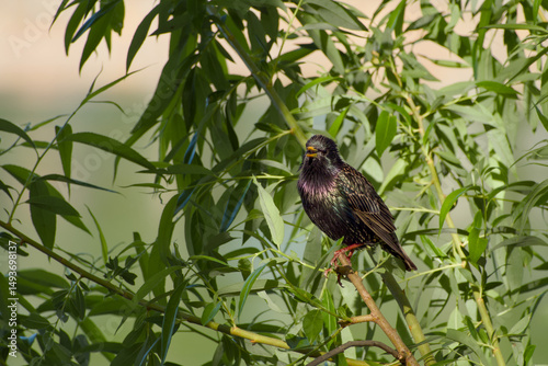 © in_colors, Fototapeta premium common starling perching on the twig close-up
