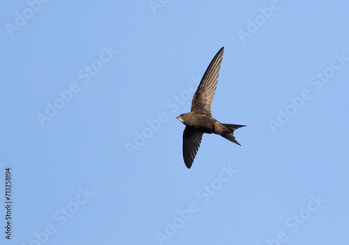 Fototapeta premium Common swift, Apus apus. A bird flies against a blue sky