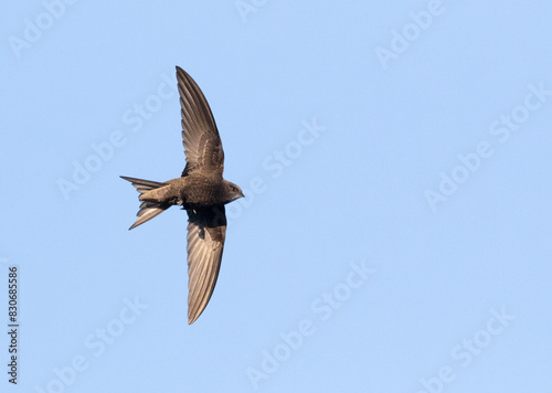 Fototapeta premium Common swift, Apus apus. A bird flies against a blue sky