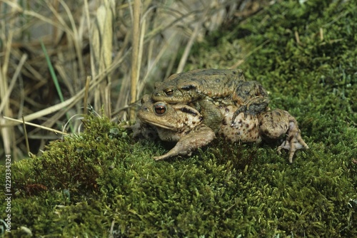 © Dieter Hopf/imageBROKER, Fototapeta premium Common Toad (Bufo bufo), female carrying male on her back to spawning water