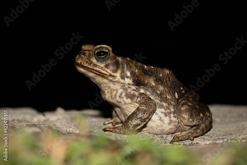 © JohnGuerrero, Fototapeta premium Common toad or European toad species of frog in the Bufonidae family with black background