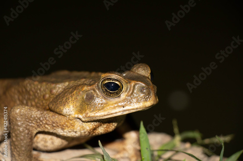 © JohnGuerrero, Fototapeta premium Common toad or European toad species of frog in the Bufonidae family with black background