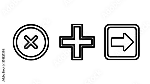 Fototapeta premium Common User Interface Symbols Including Cancel Mark Add Plus and Proceed Arrow Icons