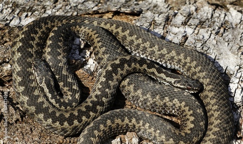 © juerpa68, Obraz premium Common vipers Vipera berus basking, Finland.