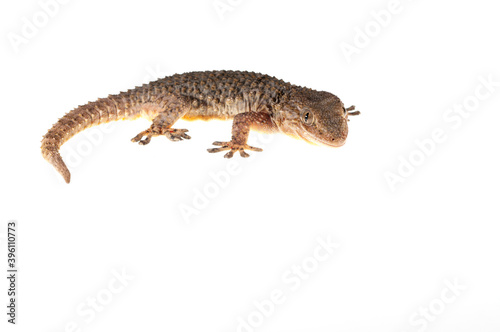 © Federico, Obraz premium Common wall gecko (Tarentola mauritanica) on white background, Italy.