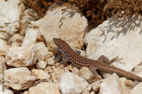 © Dennis Gross, Obraz premium Common wall lizard basking on a stones