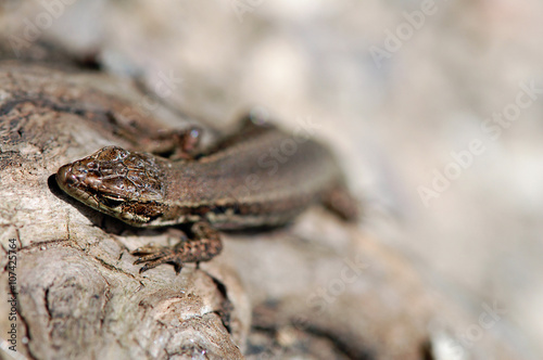 © lcrms, Naklejka premium common wall lizard on stonewall