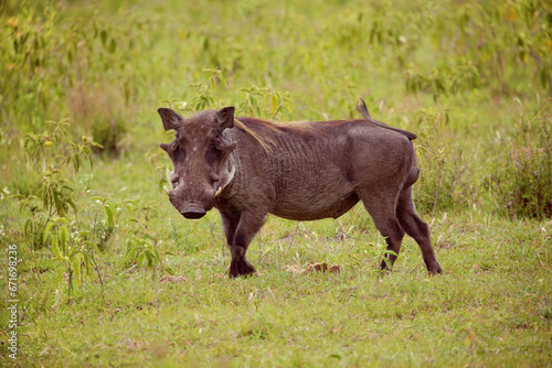 © Elena, Fototapeta premium Common Warthog in wild cloceup and looking eyes to eyes