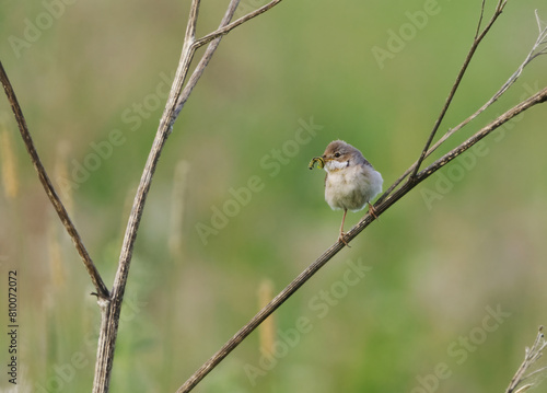 Fototapeta premium Common whitethroat or greater whitethroat (Curruca communis) perched with a...
